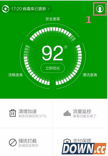 打开360卫士,点击右上角头像按键。下面以滴答锁屏为例