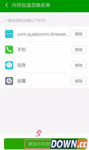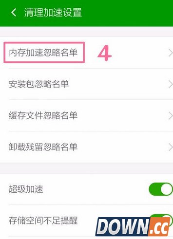 点击“内存加速忽略名单”。