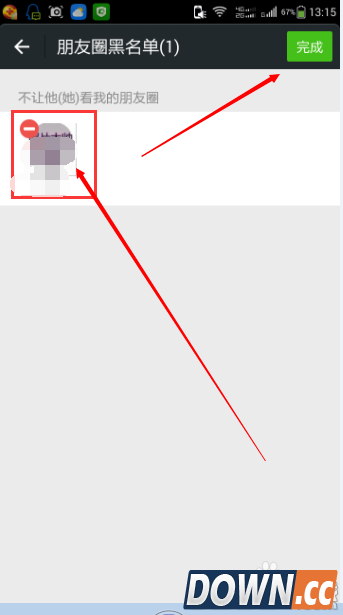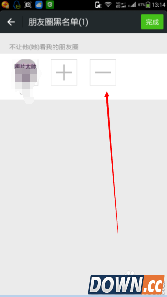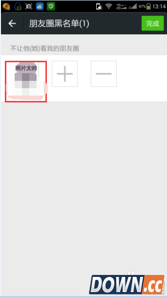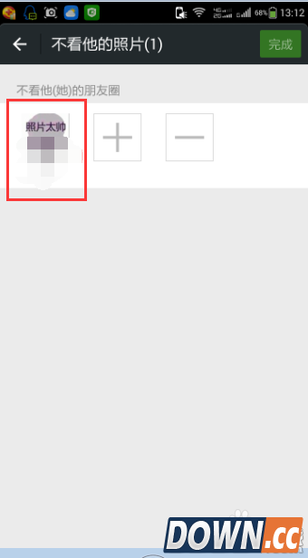 接着点击【+】按钮,然后在你的通讯录里面找到自己要屏蔽的好友,选中要屏蔽的好友后点击右上角的“确定”按钮,接着点击“完成”即可屏蔽掉该好友的动态了。