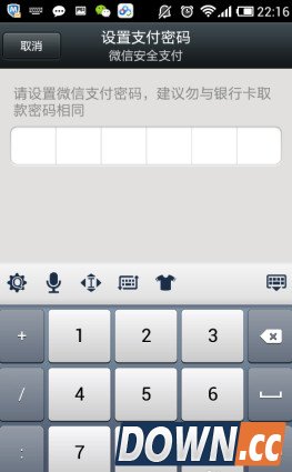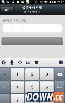 4、在设置支付密码页面,设置支付密码,自动进入第二次输入密码页面。