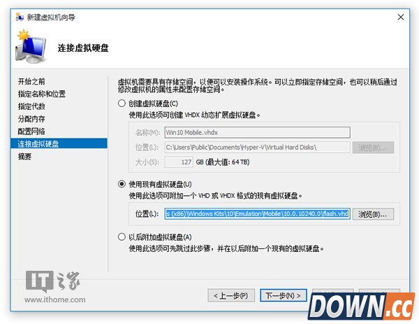 这里记得选择第二项,也就是已经下载好的VHD文件,在路径C:Program Files (x86)Windows Kits10EmulationMobile10.0.10240.0里,选择flash.vhd。