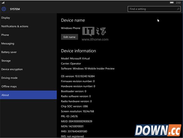 看一下版本号Windows10 Mobile Build 10240.16384。
