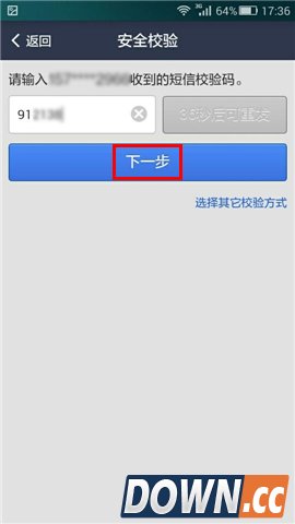 5、点击【通过原手机短信校验】之后会有验证码发过来,输入会后点击【下一步】即可。