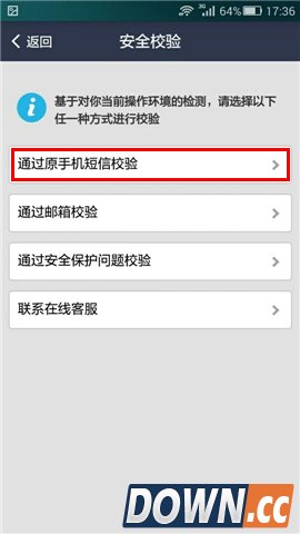 4、这里有三种方式修改【通过原手机短信校验】、【通过邮箱校验】、【通过安全保护问题校验】,看你自己用哪一个,总之通过之后它的密码修改界面是一样的。这里我们使用短信校验。