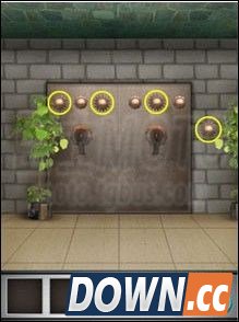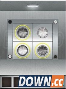 第9层 这一层的电梯看起来像一个保险柜,在电梯门上面有四个旋钮,而且在门上的四个角的螺栓给解答这一关做了提示。 1号门板对应的是左上角的螺栓,内圆和外环都更改为暗色。 2号门板是对应右上角的螺栓,内圆和外环都更改为亮色。 3号门板是对应的左下角的螺栓,内圆更改为亮色,外环更换为暗色。 4号门板对应的是右下角的螺栓,内圆更改为暗色,外环更改为亮色。 玩家只要设置完成之后,电梯门就会自动打开。
