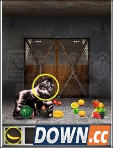 第8层 在这一层的电梯门被一只金刚挡住了,而且在金刚的前面还有有一堆的水果。