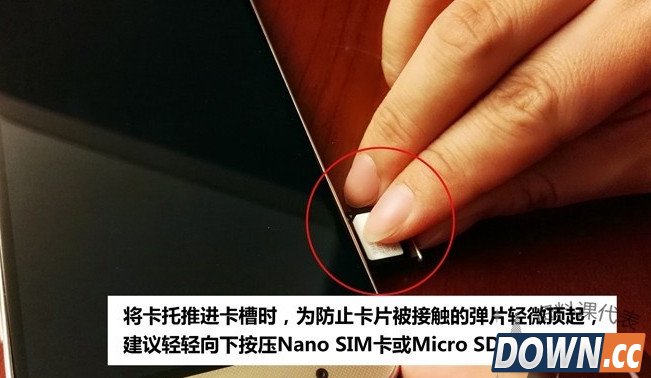 请保持卡托与卡平齐,将卡托推进卡槽内。